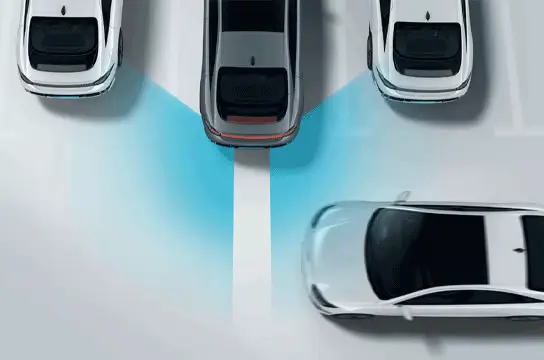 RCCA memperingatkan apabila ada kendaraan di jalur belakang yang mendekat pada saat mundur dan melakukan pengereman darurat jika diperlukan.
