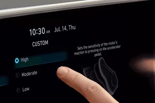 Anda dapat mengatur tenaga motor, sensitivitas akselerator, tenaga kemudi, dan mode driveline agar sesuai dengan gaya mengemudi Anda.