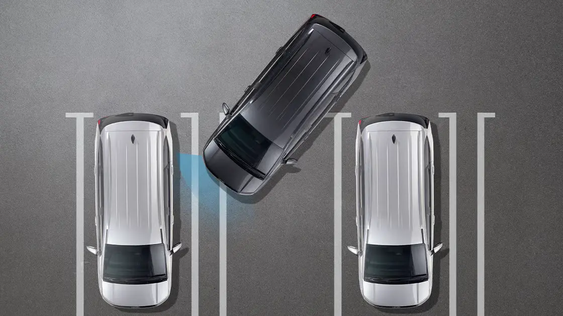 Fitur ini membantu mendeteksi kendaraan yang mendekat di area blind spot dan memberikan peringatan melalui lampu indikator, suara, dan pesan di layar. Jika terdeteksi risiko benturan saat keluar dari parkir paralel, sistem dapat membantu melakukan pengereman untuk menghindari benturan membantu pengereman darurat.