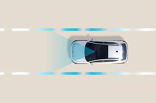 Menggunakan kamera depan untuk mendeteksi marka jalan dan lalu lintas, untuk membantu pengemudi agar kendaraan tetap di tengah jalur.