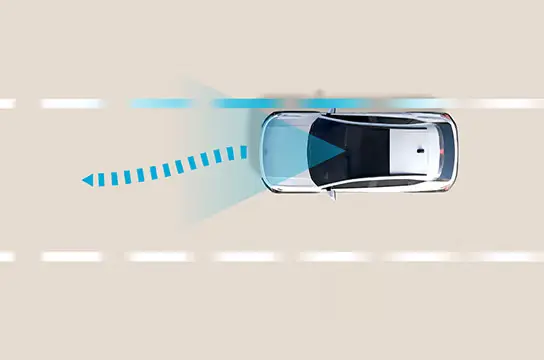 Cegah kendaraan keluar jalur lewat kamera depan untuk memantau garis jalan. Jika kendaraan keluar jalur tanpa sengaja, sistem ini memberi peringatan dan dapat mengarahkan mobil kembali ke jalur secara otomatis.